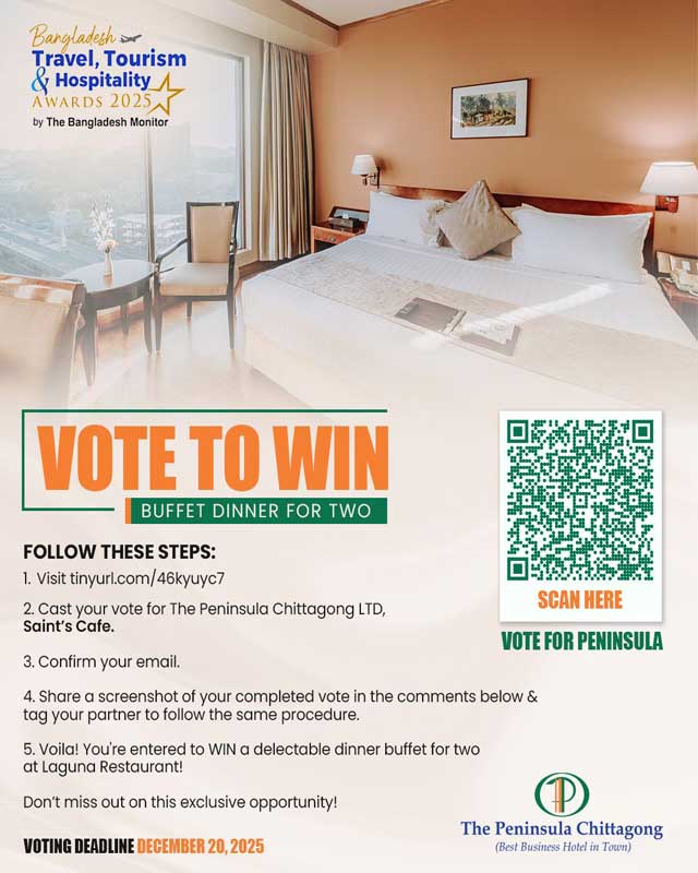 Support The Peninsula Chittagong at the Bangladesh Travel, Tourism & Hospitality Awards 2025 and stand a chance to WIN a Buffet Dinner for Two at Laguna Restaurant!