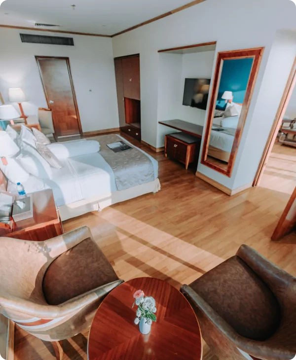 Experience luxurious comfort in our elegantly designed rooms and suites, each offering modern amenities and personalized service.